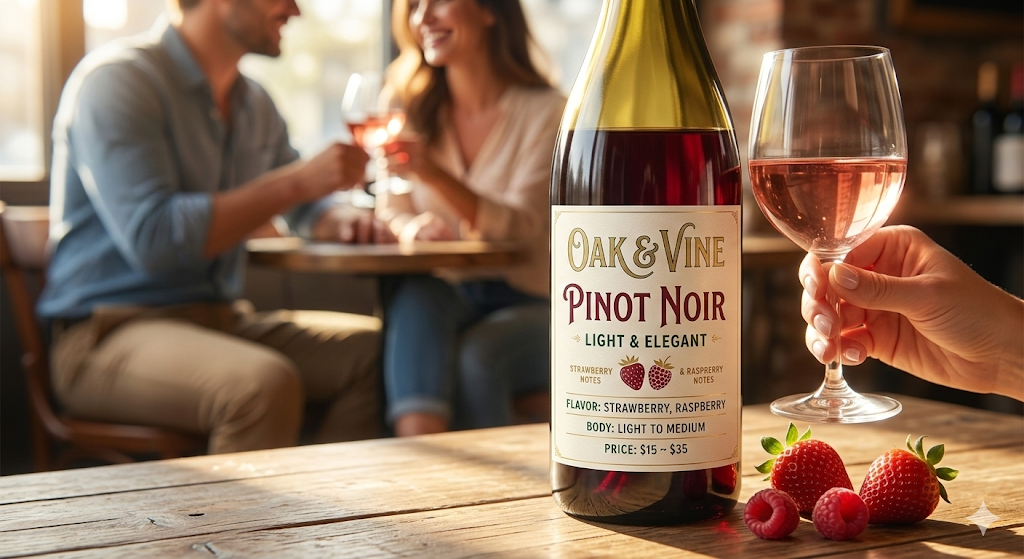 피노누아는 가벼운 바디와 부드러운 향이 특징으로, 와인을 처음 접하는 사람들에게 부담이 적은 와인입니다.